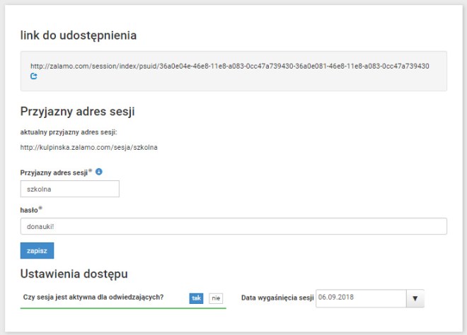W zakładce Udostępnij na końcu czeka na Ciebie bardzo ważne pytanie 🙂 Po przekroczeniu wyznaczonej daty sesja wyłączy się sama (a Ty wciąż masz pełen dostęp do zamówień, podglądu sesji).