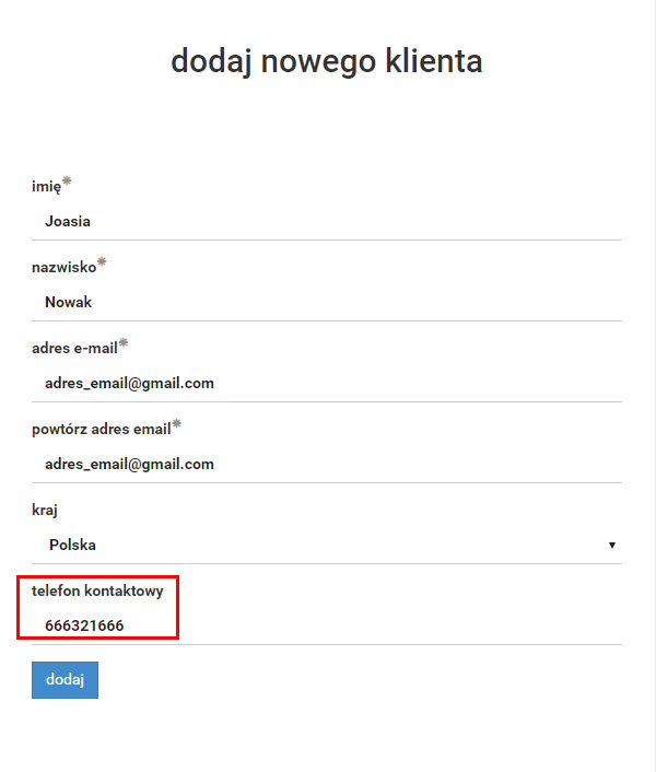 Wystarczy przy dodawaniu nowego klienta (lub aktualizacji danych istniejącego) wpisać jego nr telefonu + kraj. To nie jest obowiązkowe, więc jeśli nie chcesz korzystać z SMS, lub po prostu nie znasz numeru klienta to najzwyczajniej w świecie nie musisz go wpisywać.