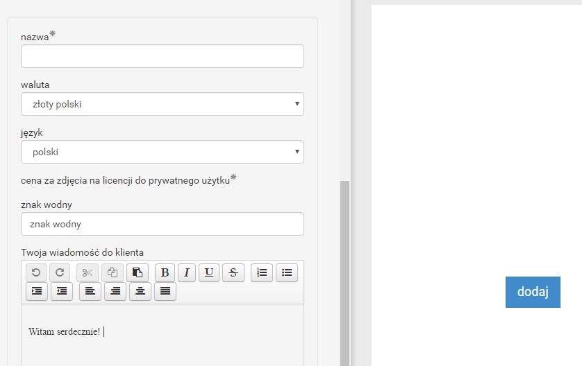- Ustaw Cennik: Samodzielnie ustalasz ceny dla różnych formatów zdjęć. Ważne, by były tam też formaty dostępne w Premium. Automat zadba o to, by Twój klient zobaczył tylko te opcje, które są dostępne w obsłudze automatycznej. Inne opcje zostaną wyłączone.